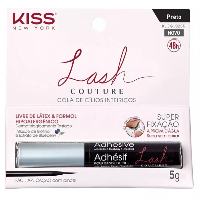 A Cola para Cílios Lash Couture Preta, de Kiss New York, contém infusão de biotina e extrato de blueberry na composição, que ajudam a proteger e manter os cílios verdadeiros saudáveis. Ainda é livre de látex e formol, apesar de ter altíssima fixação, e tem secagem rápida que não borra a maquiagem. Ainda é fácil de aplicar com o pincel fino.
