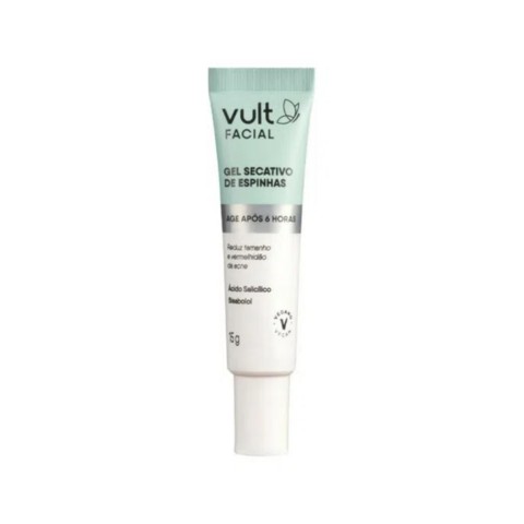 O gel secativo de espinhas de Vult Facial reduz o tamanho e vermelhidão da acne após 6 horasda aplicação, melhorando o seu aspecto. Com Ácido Salicílico na composição, reduz as bactérias causadoras da acne e desobstrui poros, enquanto o Bisabolol, ativo derivado da camomila, tem ação suavizante. Conheça os ativos do produto: Ácido Salicílico – ação queratolítica que controla a produção de sebo, desobstrui os poros e promove melhora da acne. Bisabolol – derivado da camomila, ativo reconhecido por sua ação suavizante. Reduz tamanho e vermelhidão da acne.
