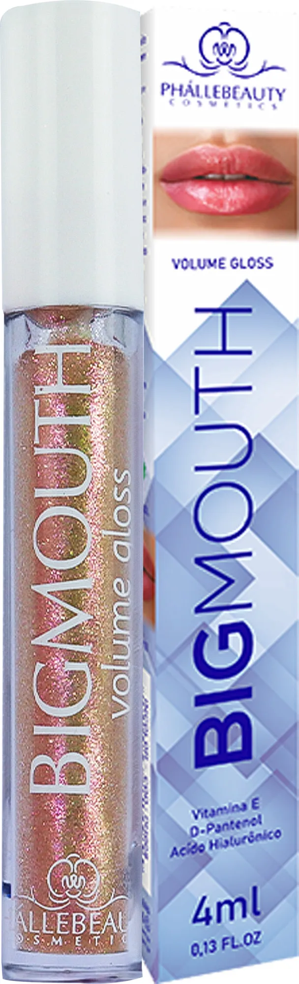 O Gloss Labial BigMouth da PhalleBeauty é um gloss de volume, tornando-os visualmente mais volumosos e delineados, além de regenerador, que nutre, hidrata, intensifica a cor dos lábios.