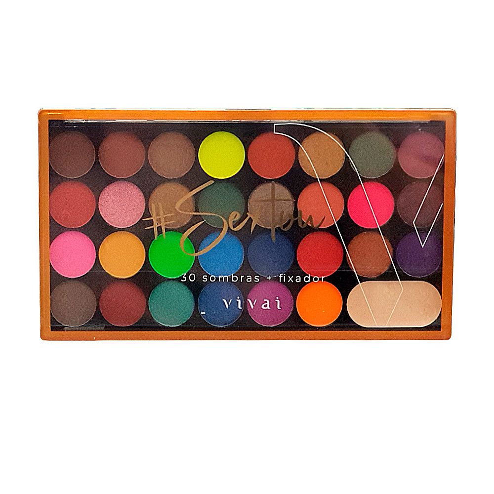 Paleta de sombras #SEXTOU possui 30 sombras entre elas matte e cintilantes mais um fixador.